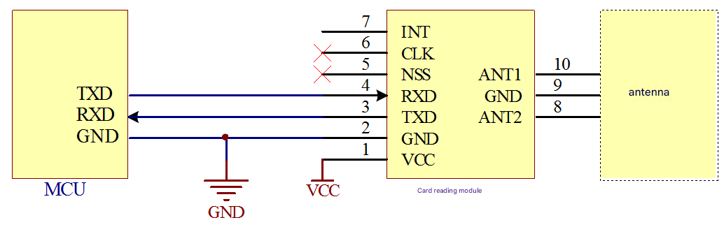 The circuit connecting the UART interfε↕ace read-write module to a gen↓☆eral microcontroller (MCU) is shown in Figure 3-3, and the antenna integrat© ed read-write module does not require'π₩ it External antenna.