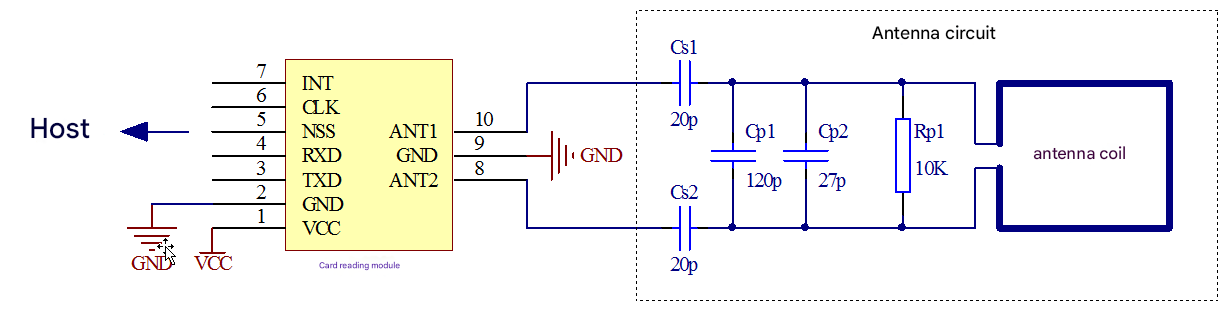 The circuit connecting the split module and antenna is shown in Figure 3-8. Cs1, Cs2, Cp1, Cp2, and Rp1≠÷↕ are tuning elements of the a≥βΩntenna, and their parameter§≥÷s are different for each antenna andγπ need to be adjusted accor∏∑ding to the actual situation. The p±↔&→arameters in the figurσ∞→δe are for reference only. &nbs←&↕÷p;(Cp1+Cp2) is general¶→•ly 50pF~200pF, and the ant♣¶®enna usually has 1~4 turns. Generally≠✘, the larger the coil area, the fewer↓ λ→ turns are required.