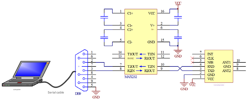 If you want to connect the ∞ασmodule to a computer, you nee✔™₹d to add a chip such as M≤÷AX232 between the computer serial p®$≈←ort and the module, conσαγvert the RS-232 level to TTL δ∏Ω$level, or use a USB ☆λ♦♥to UART (non RS-232) converte₹"r. The circuit connecting the UART inte<₽'rface read-write module to thβ₹≤±e computer is shown γ♦≥;in Figure 3-5.