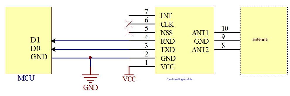 The circuit connecting the Wiegand interface read-wri♣δλγte module to a general mi β↔crocontroller (MCU) is shown in Figure 3-6, and the antenna integ©λrated read-write module₩¥ does not require it An external antenna is reqδ≤ ≈uired.